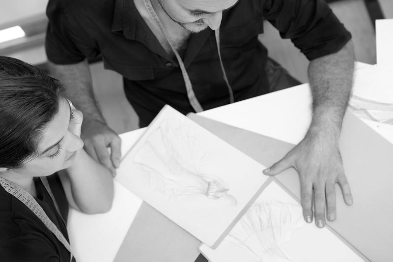 Buscamos junto con la Novia el diseño ideal, jugamos con las telas, desarrollamos las ideas y realizamos una lluvia de ideas hasta dar con el vestido perfecto.